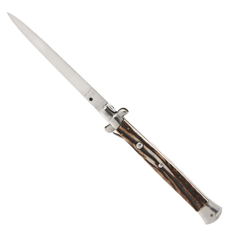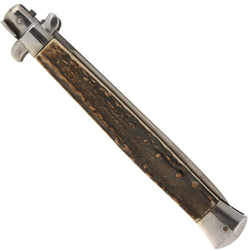 Vintage Italian automatic knife in deer antler marked "B Rostfrei" in excellent condition.