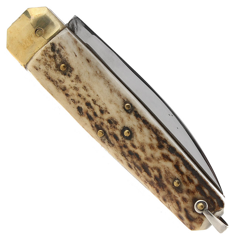 Gros couteau de chasse à cran forcé en bois de cerf. Occasion en excellent état.