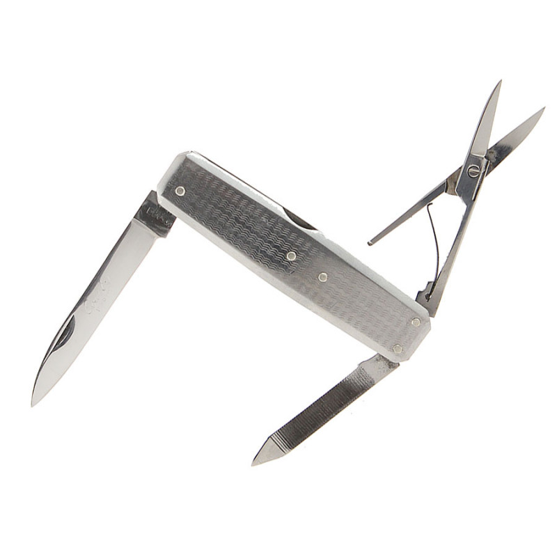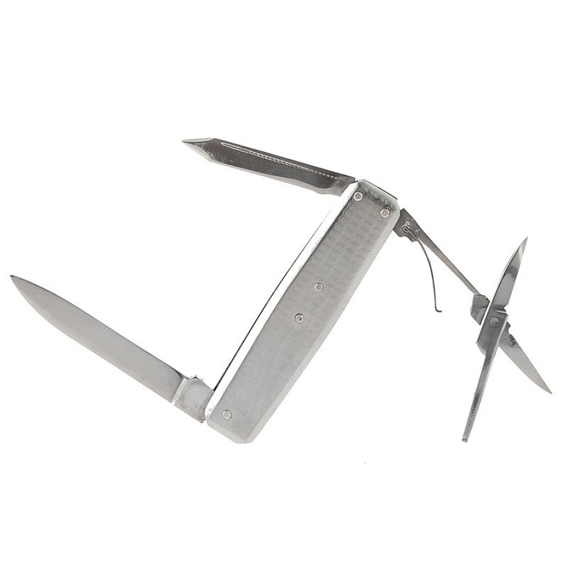 Canif vintage 3 pièces inox guilloché. Occasion en bon état.