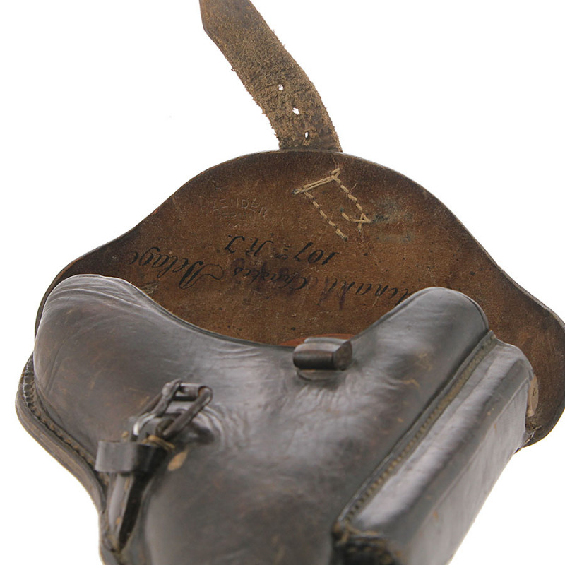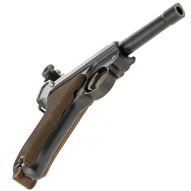 Pistolet P08 DWM 1916 en excellent état, avec ses deux chargeurs au numéro de l'arme, son outil de démontage et son holster également de 1916 avec marquage de prise de guerre "Lieutenant Charles Delage 107 éme Régiment d'infanterie" Les photos sont contractuelles. Excellent état de fonctionnement et canon parfait. Un très bel ensemble non touché.